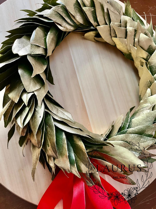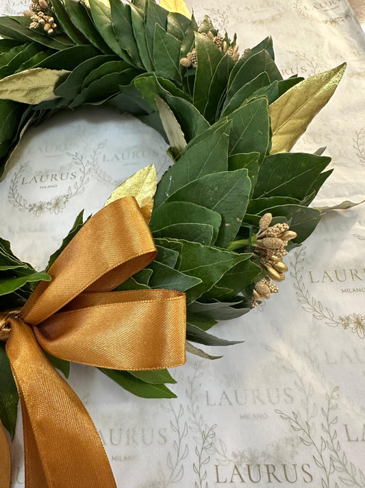 Corona d'Alloro - Foglie dorate e mini Bacche oro