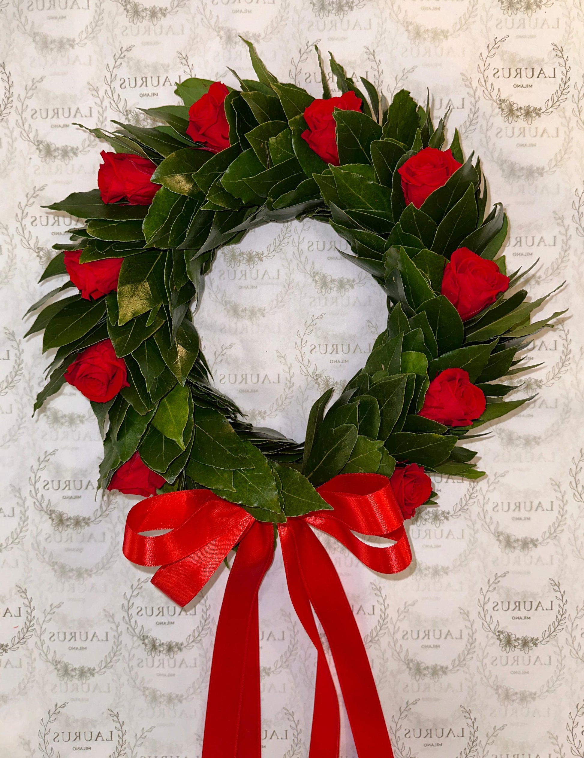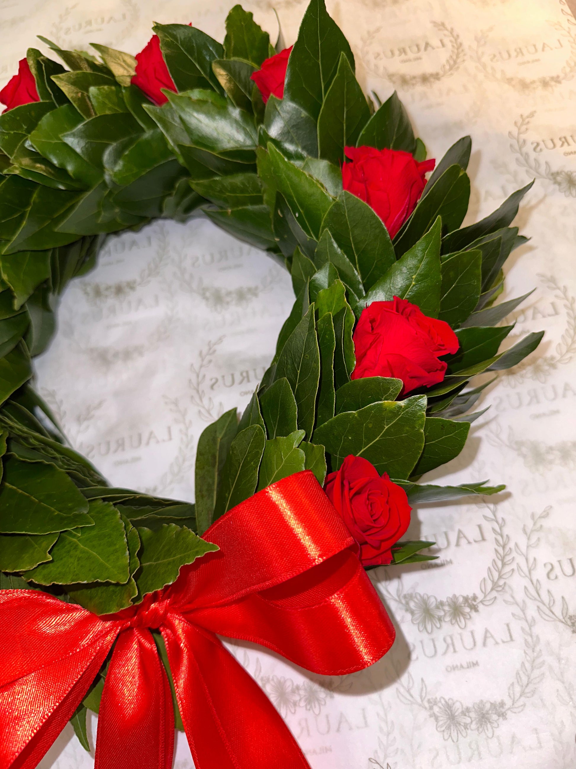 Corona d'Alloro - Rose rosse stabilizzate
